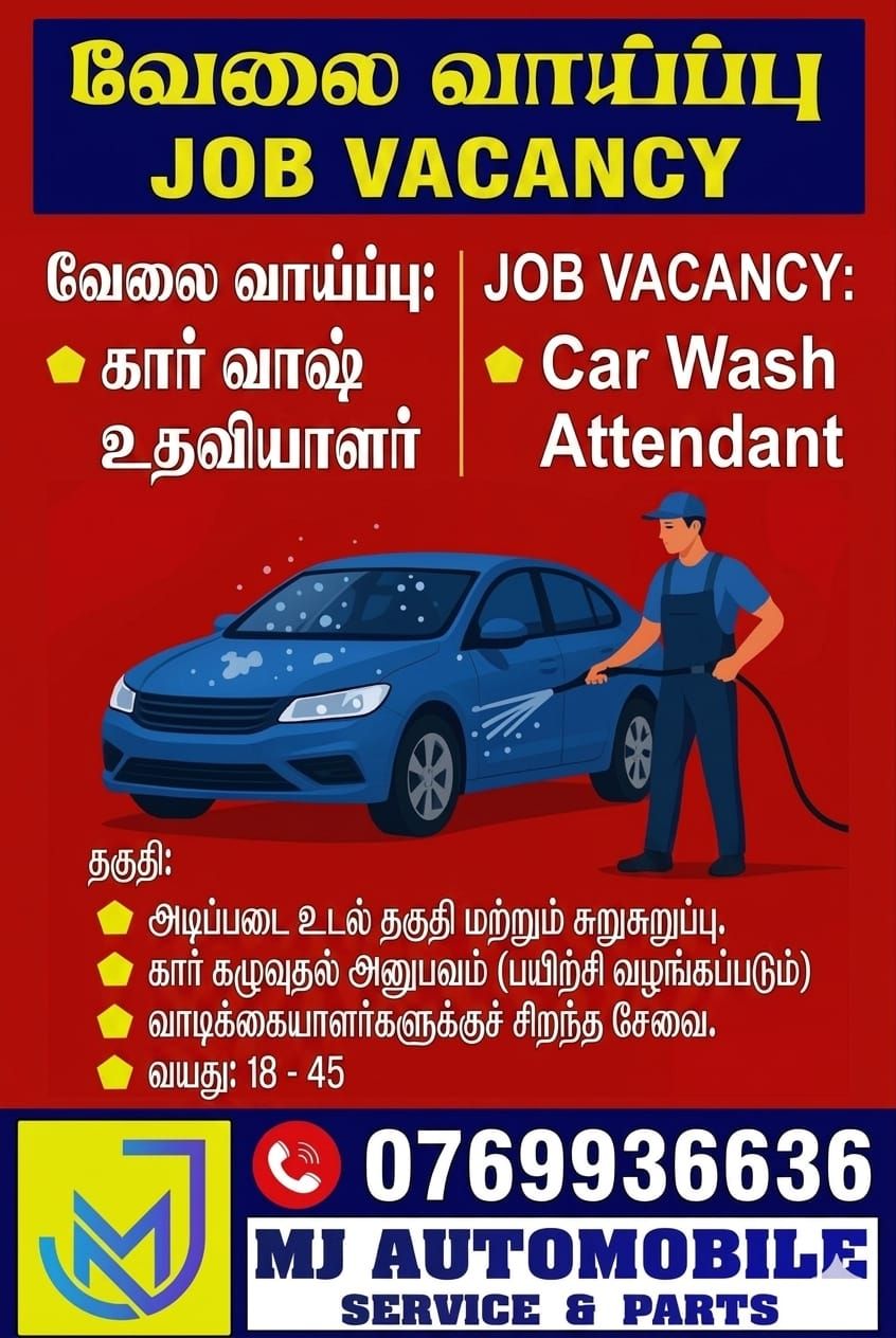 வேலை வாய்ப்பு: கார் வாஷ் உதவியாளர் (Car Wash Attendant)