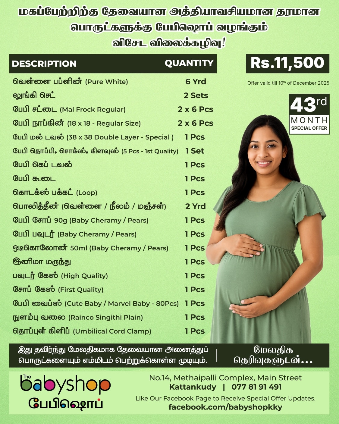 மகப்பேற்றிற்கு தேவையான #தரமான அத்தியவசியமான பொருட்களுக்கு Rs.11,500/= மாத்திரமே