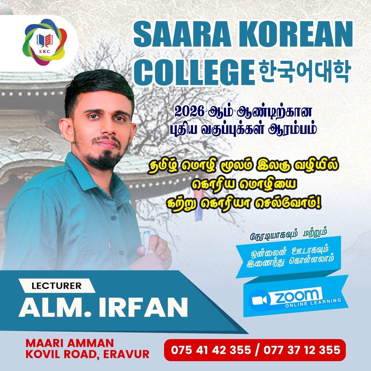 🇰🇷 ஏறாவூரின் முன்னணி SAARA KOREAN COLLEGE புதிய வகுப்புகள் விரைவில் தொடங்குகின்றன!